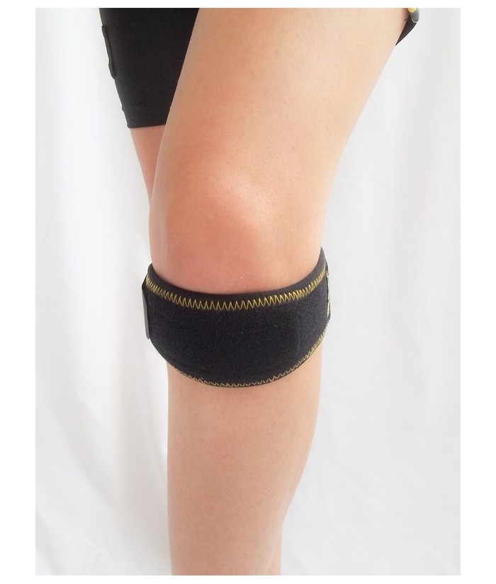 • Indicaţii: proiectata pentru a sprijini rotula din partea de jos, fiind captusita cu silicon special care aplica presiune pe tendonul cvadriceps. Recomandata in sindromul dureros patelo-femural, tendinita / tendinopatie patelara (tendon rotulian).