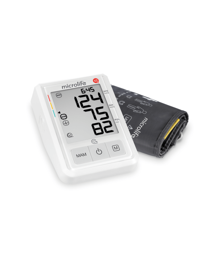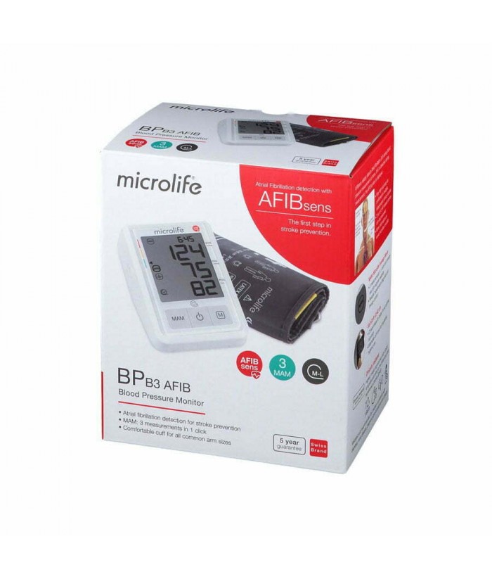 Tensiometrul Microlife BP B3 AFIB este un tensiometru care permite o masurare corecta si precisa la domiciliu si poate inregistra pana la 100 valori ale tensiunii arteriale. detecteaza fibrilatiile atriale periculoase cu ajutorul tehnologiei AFIB si este dotat cu o manseta conica pentru o acuratete optima.